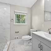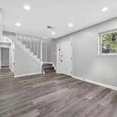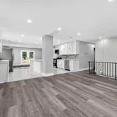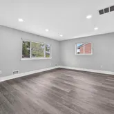 Fully renovated and move-in ready! This spacious 5-bedroom, 3 full bathroom home features modern updates throughout, including new gray vinyl flooring and updated lighting in every room. The kitchen is a standout with white cabinetry, stunning quartz countertops, a large quartz island, and plenty of prep and storage space—ideal for any home chef. Enjoy two separate living rooms, perfect for entertaining or relaxing, plus a formal dining room with direct access to the back deck for easy indoor/outdoor living. The oversized primary suite includes a beautifully updated bathroom with white countertops and elegant tile flooring. A dedicated bonus room with a private entrance offers great flexibility for a home office, guest space, or studio. Additional features include: