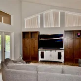- Interior Features: Attic Fan, Attic Ventilator, Ceiling Fan(s), Eating Space In Kitchen, High Ceilings, Kitchen/Family Room Combo, Open Floorplan, Primary Bedroom Main Floor, Solid Wood Cabinets, Stone Counters, Thermostat, Vaulted Ceiling(s), Walk-In Closet(s), Window Treatments