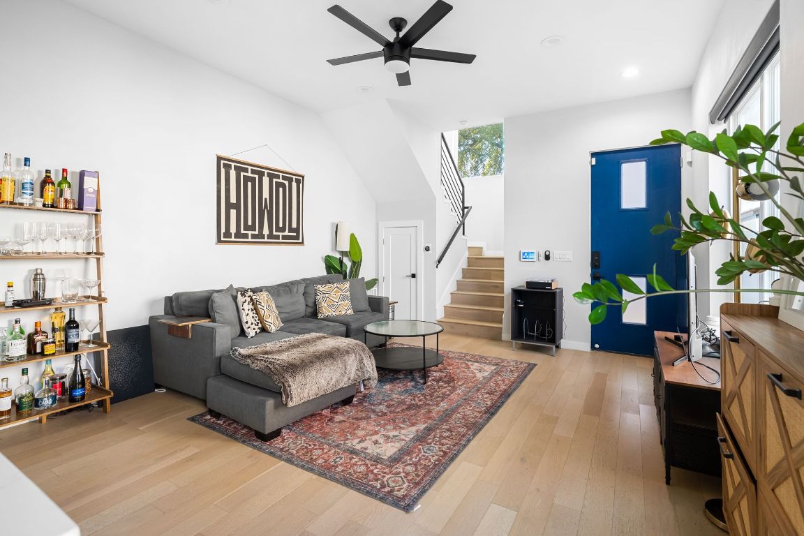 Welcome to this recently built 2-bed, 2.5-bath East Austin home with 1,077 sqft of smart, functional living and unobstructed Downtown views. Built by award-winning LBF Homes, it features wood floors, BOSCH appliances including fridge, open shelving, and a spacious island. The main floor includes a half bath, laundry closet with stacked washer & dryer, under-stair storage, and yard access. Upstairs is a primary suite with ensuite bathroom, second bedroom, and full guest bath with walk-in shower—perfect...Welcome to this recently built 2-bed, 2.5-bath East Austin home with 1,077 sqft of smart, functional living and unobstructed Downtown views. Built by award-winning LBF Homes, it features wood floors, BOSCH appliances including fridge, open shelving, and a spacious island. The main floor includes a half bath, laundry closet with stacked washer & dryer, under-stair storage, and yard access. Upstairs is a primary suite with ensuite bathroom, second bedroom, and full guest bath with walk-in shower—perfect for a guest room, gym, or home office. Enjoy two decks, including a spacious rooftop deck with beautiful unobstructed views of Downtown Austin. The fenced yard offers great potential for entertaining and keeping pets enclosed. Upgrades include: smart thermostats, automatic blackout shades, spray foam insulation, 2021 water heater, and oversized 1-car garage. Close to Downtown, airport, and local favorites like Springdale General, Medici Coffee, Uroko and more!
