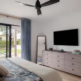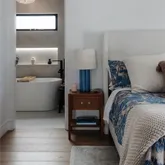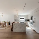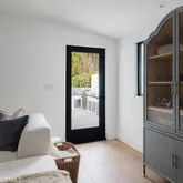 Inside, you’ll find a light-filled open layout featuring wide plank flooring, custom cabinetry, designer lighting, and a stunning chef’s kitchen anchored by a waterfall island and high-end appliances. The spa-inspired bathrooms and carefully curated finishes throughout create a calm, modern coastal aesthetic rarely found in a property available for lease.
