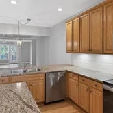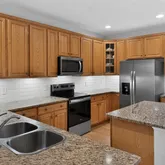 Gleaming granite countertops and a stylish subway tile backsplash.