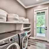 - Interior: Ceiling Cathedral, Floor Laminate, Kitchen Island, Lighting Recessed, WasherDryer Hookup