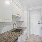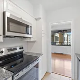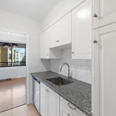 Hardwood floors flow throughout the open layout, giving the home a warm, polished feel. The dining area, lit by a wall of glass, leads straight to your oversized private balcony—a rare retreat that’s just begging for brunches, wine nights, or your favorite plant collection. The kitchen brings the wow factor with sleek white cabinets, granite counters, and a classic subway tile backsplash. With ample closet space and a smart layout, this one-bedroom, one-bath feels every bit as functional as it does stylish.