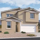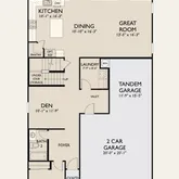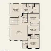 Snapdragon floorplan at Amarillo Creek in Maricopa offering 2,941 sq ft, 5 bedrooms, 4 baths, den, loft, and 3-car tandem garage in a Farmhouse elevation. Open-concept kitchen, dining, and great room with under-stair storage and downstairs laundry. Bedroom and full bath downstairs; Bedroom 5 features en-suite bath. Upstairs includes large loft, bath for Beds 3 & 4, and spacious primary suite with storage, linen, and large walk-in closet. Harmony AW Collection with white 42'' soft-close cabinets,...Snapdragon floorplan at Amarillo Creek in Maricopa offering 2,941 sq ft, 5 bedrooms, 4 baths, den, loft, and 3-car tandem garage in a Farmhouse elevation. Open-concept kitchen, dining, and great room with under-stair storage and downstairs laundry. Bedroom and full bath downstairs; Bedroom 5 features en-suite bath. Upstairs includes large loft, bath for Beds 3 & 4, and spacious primary suite with storage, linen, and large walk-in closet. Harmony AW Collection with white 42'' soft-close cabinets, quartz counters, picket backsplash, warm honey tile in main areas/baths, plush carpet, matte black fixtures. GE appliances, fridge, washer/dryer, blinds included.