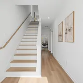 This is the Chelsea floor plan and features 3 bedrooms, 2.5 baths, and a highly efficient layout. This address offers an extra parking space and backyard has direct access to the dog park. First floor offers seamless kitchen, living, and dining spaces with a tucked-away powder bath—ideal for everyday living and entertaining. Second floor includes the primary suite with a spa-style bath (soaking tub, oversized shower, dual sinks) and a custom walk-in closet with built-in lighting, plus two secondary bedrooms, full bath, and utility room.