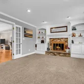 - Living Room: Built-Ins, Fireplace - Woodburning, Floor - W/W Carpet