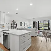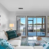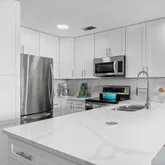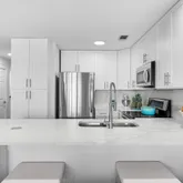 The stylish kitchen is a chef's delight, boasting quartz countertops...Welcome to your dream waterfront condo in Miramar Beach. This completely renovated, beautifully designed condo offers light-filled living space, perfect for those seeking a luxurious coastal lifestyle. With southern exposure, the interiors are bathed in natural light, accentuating the luxury vinyl plank (LVP) flooring and modern recessed lighting. The living room features expansive windows with motorized blinds for added convenience.