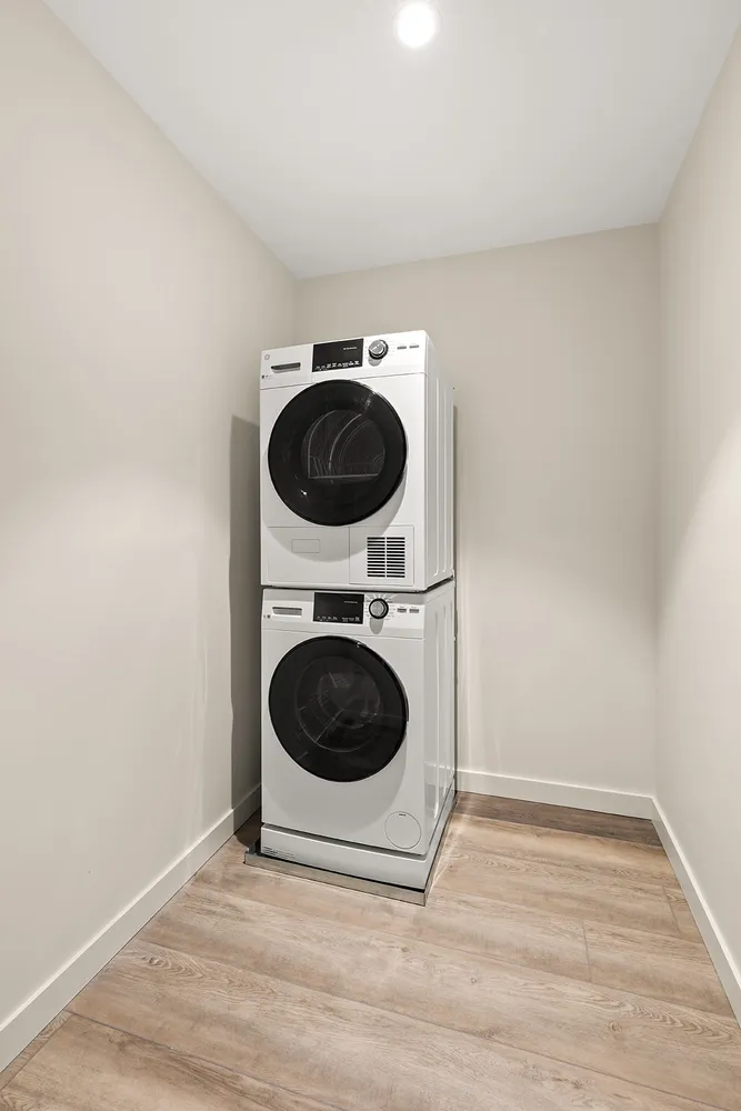The top floor greets you with an open-concept living and dining area that flows effortlessly onto a sun-drenched, south-facing private terrace. At 173 square feet, this private outdoor space is perfect for morning coffee, evening cocktails, or simply unwinding above the city buzz. The sleek, modern open kitchen offers ample cabinets and storage, making it as functional as it is stylish. Completing the top floor is a half bathroom, ideal for entertaining.