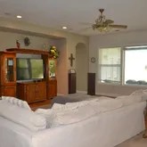 2nd and 3rd BEDROOMS, HALL BATH and LAUNDRY: Both bedrooms are at the end of an oversized hallway. One with carpet and the other wood flooring. Hall bath has dual sinks in hickory vanity, Door separates vanity from tub over tiled shower and sliding glass doors, Travertine flooring, Laundry has storage cabinets and sink. Travertine flooring. Opens to three car garage. Sheetrocked and insulated.