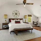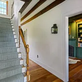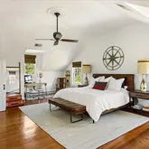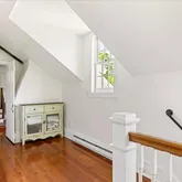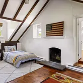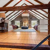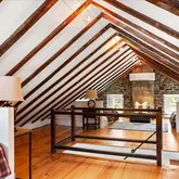 - Room Description: Finished attic, wood floor, exposed beams, mini-split