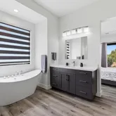 - Interior Features: Ceiling Fan(s), Counters-Solid Srfc, Soaking Tub, Kitchen Island, Live on One Level, Master Downstairs, Pantry, Quartz Countertops, High Ceilings, Walk-In Closet(s), Wash/Dry Connection