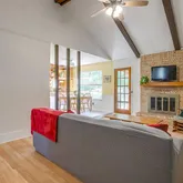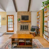 - Fireplace Features: Brick, Living Room, Raised Hearth, Wood Burning