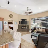 Mountain Views! Quiet Lakeside Location. Freeform Pool with Tanning Shelf, Raised Bond Beam and Quartzite Spa. Pergola with Sunbrella Fabric Cover, Fans, Sunshades and Misting System. Portable BBQ Station. Wrought Iron Doggie Fence. Rock Speakers by Pool. New Pool Heater