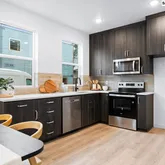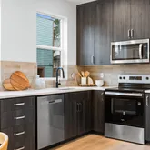 - Kitchen Appliances: Dishwasher, Disposal, Free Standing Range, Microwave, Quartz, Solid Surface Countertop, Stainless Steel Appliance