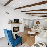 - Interior Features: Beamed Ceilings, Ceiling Fan(s), High Ceilings, Open Floorplan, Recessed Lighting, Kitchen Island, Kitchen Open to Family Room, Pots & Pan Drawers, Remodeled Kitchen