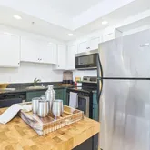- Kitchen Features: Counter - Solid Surface, Stone Counters, Dishwasher, Electric Range/Cooktop, Disposal, Refrigerator