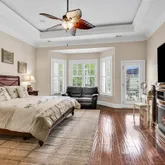 - Room Features: TrayCeilings, CeilingFans, Fireplace, MainLevelMaster, WalkInClosets