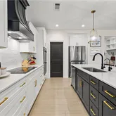 - Kitchen Features: Cabinets White, Eat-in Kitchen, Kitchen Island, Pantry, Pantry Walk-In, Solid Surface Counters, View to Family Room