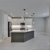 this home boasts a spacious open floor plan with luxury finishes like tiled flooring, quartz countertops, an extended kitchen island, gas cooktop,