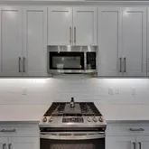 stainless steel appliances, and large windows that flood the home with natural light—perfect for entertaining. Smart home features include a
