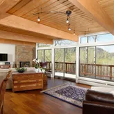 The top floor's glass walls and 1,563 feet of deck embraces the outdoors in all seasons. Enjoy an expansive open floor plan, hardwood floors, a stone-surround fireplace, and inspiring views through a seasonal tree canopy. The living space seamlessly flows into the mindfully remodeled kitchen, encouraging culinary arts and entertaining options. Adjacent, the formal dining room features glass doors opening to two private decks, complete with an al-fresco dining area, grill, and hot tub. Three spacious bedrooms and two baths complete the upper level. Downstairs, find three additional above ground bedrooms and three baths, along with media/ billiard room. This secondary entertaining space not only offers guests a private enclave but has a private entrance. Luxury finishes include custom cabinetry, wet bar, stone-surround fireplace. The fireplace (one of three) is wood burning with crackling logs and aromas providing a classic Colorado experience no longer permitted in Pitkin County. There is Ample parking along the paved driveway to the attached 1-car garage, or in the upper parking area leading to the main entrance. Located in the esteemed Aspen School District, 49 Elk Ridge Lane is where timeless design meets modern luxury. End-of-road ski access from Maple Ridge Lane to Eddy-Out ski run, Neighborhood mobile pickle ball court at the Elk Ridge Lane cul de sac. Offered furnished and move-in ready.