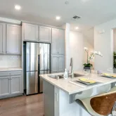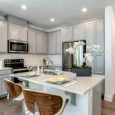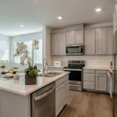 - Kitchen: Cooktop - Electric, Countertop - Quartz, Dishwasher, Island with Sink, Microwave, Oven Range, Refrigerator