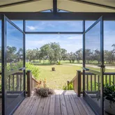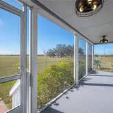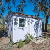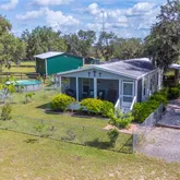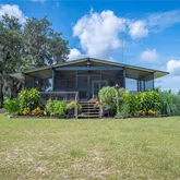 support production, storage, and flexible workspace use. The main residence provides immediate use for on-site management or owner occupancy and features open-concept living with expansive screened porches overlooking the pond. Potential exists to connect front and back porches for complete wrap around. Recent upgrades include new LVP flooring, fresh interior paint, updated trim, and faux-wood blinds. A 24KW Generac generator with a 500-gallon underground propane tank powers the entire complex, providing reliable backup power, operational continuity and peace of mind. Conveniently located within driving distance to Tampa, Orlando, and Bradenton airports,