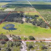 privacy, nestled amongst acres of orange groves, with no noise or light pollution - an increasingly rare feature for both ranching operations and family living. Ideal for uses requiring security, discretion, or uninterrupted activity. The land is fully fenced with established Bahia grass pastures and is cattle- and livestock-ready, featuring barns, livestock and poultry facilities with electric and water, kennels, workshops, RV hookups, storage buildings, gardens, and a