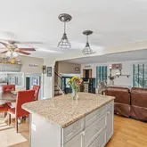 - Interior Features: Ceiling Fans, Separate Formal Dining Room, Granite Counters, Hot Tub Spa, Kitchen Island, Kitchen Family Room Combo, Living Dining Room, Sliding Glass Doors, Sauna