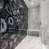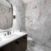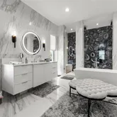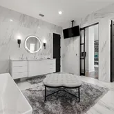- Flooring: Porcelain Tile, Travertine, Hardwood