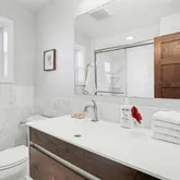- Room Description: Updated lower-level full bathroom with tub/shower combo, heated floors, ideal for guests.