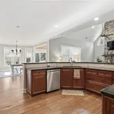 - Kitchen Features: Breakfast Bar, Breakfast Room, Cabinets Stain, Kitchen Island, Stone Counters, View to Family Room