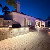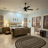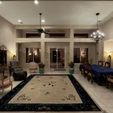 Inside, the home offers a spacious great room with fireplace that opens to an island kitchen, creating the ideal hub for gatherings. Three ensuite guest bedrooms are located on one side of the home, while the private primary suite sits on the opposite side with a soaking tub, walk-in shower, dual vanities, a large walk-in closet and direct access to the rear patio and pool. Desert River Estates is known for its quiet elegance, wide streets, beautifully maintained landscaping and all half-acre lots, with limited turnover. Other amenities, putting green, Automatic Gate for behind the wall parking, Outdoor Kitchen with a Barbecue and Putting Green