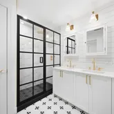 Head to the owner’s suite to find a huge walk-in closet/dressing room and an en suite bathroom featuring a double vanity, linen closet and a rain shower with a custom grid-patterned black bronze door. The second bedroom is placed directly next to the well-appointed guest bathroom. A huge storage room with an in-unit washer-dryer and allocated roof deck area complete this impeccable turnkey Brooklyn condominium.
