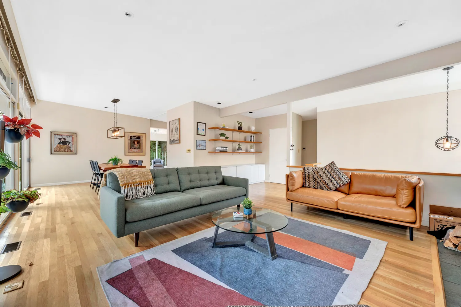 Designed for both comfort and versatility, the main level features an elegant eat-in kitchen, a warm and inviting open floor plan living and dining room with fireplace and floor to ceiling windows and sliders. With six bedrooms and two bathrooms thoughtfully arranged across two floors, plus a spacious lower-level living area, the home offers flexible spaces for family, guests, or work.