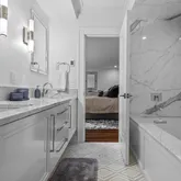 - Bathroom1 Features: Bathroom - Double Vanity/Sink,Bathroom - With Shower Stall,Bathroom - With Tub,Recessed Lighting,Remodeled,Lighting - Sconce