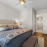 Inside, the open floor plan is designed for both everyday comfort and effortless entertaining, complete with Smart home features like a Control4 Home Automation System and Nest Thermostat. The chef’s kitchen boasts quartz countertops, a Sub-Zero refrigerator, Wolf gas range, trash compactor and premium appliances. Natural light pours in, highlighting wide-plank hardwood floors, custom cabinetry, plantation shutters, and built-in storage throughout. A separate office space offers a quiet place to work or unwind. From the main living area, step onto your private covered patio, facing west in the afternoons for picture-perfect sunsets. Outfitted with its own fireplace and built-in grill, it’s an ideal setting for a game day gathering or a quiet evening outdoors. The oversized primary suite is a true retreat with a spa-like bath and a California Closet system for added organization, while the additional bedrooms provide flexibility and privacy, whether used as guest suites, an office, or versatile flex space. Practicality meets convenience with two secured parking spaces equipped with an EV charger, along with a large, climate-controlled storage unit. Beyond the walls of your home, Teasley Place offers unmatched community amenities—from Teasley Park with its outdoor kitchen, pavilion, and Big Green Egg to the Bocci and Corn Hole courts, fully equipped gym, dog park, and on-site building management—all designed to extend your living space and bring neighbors together. With its upscale finishes, low-maintenance lifestyle, and walkable access to everything downtown Alpharetta has to offer, this home balances refinement, connection, and comfort in one of the city’s most coveted addresses.