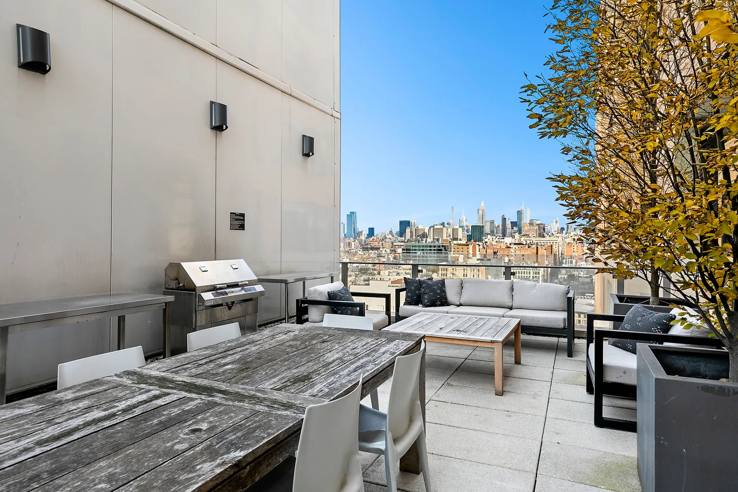 The fully serviced, boutique-style condominium features a full-time doorman, a live-in resident manager, a bike room, a pet spa, a fitness room, garage parking, and a landscaped roof deck with panoramic New York skyline views. Conveniently located to nearby public transportation and the best cafes, restaurants, shopping, and galleries Tribeca and Soho have to offer!