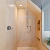 - Bathroom: Double Sinks, Dual Flush Toilet, Full on Ground Floor, Half on Ground Floor, Primary - Oversized Tub, Primary - Stall Shower(s), Shower over Tub - 1, Stall Shower, Stone