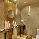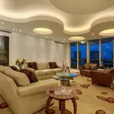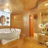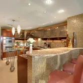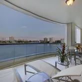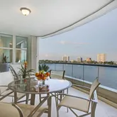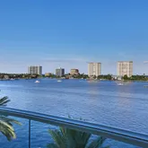 First time on market! Overlooking Lake Boca Raton from Mizner Grand's coveted center stack, this timeless modern masterpiece creates the feel of a luxury estate home with the services of a five-star resort. Commanding majestic views of the bright blue waters, this 5th floor residence offers both east and west facing balconies, which look onto Lake Boca, the Atlantic Ocean, and the golf course. Tastefully designed, this spacious residence totals 4,878 square feet with three bedrooms, four full and...First time on market! Overlooking Lake Boca Raton from Mizner Grand's coveted center stack, this timeless modern masterpiece creates the feel of a luxury estate home with the services of a five-star resort. Commanding majestic views of the bright blue waters, this 5th floor residence offers both east and west facing balconies, which look onto Lake Boca, the Atlantic Ocean, and the golf course. Tastefully designed, this spacious residence totals 4,878 square feet with three bedrooms, four full and one-half bath, a home theater, and two premium garage parking spaces. Private elevator opens to a main gallery with amber aluminum walls and custom lighting. The highest quality finishes were used by Internationally featured designer in completing this custom contemporary masterpiece. Mizner Grand's double gate-manned entry leads to a Porte Cochere where you will be greeted by the valet who escorts you and your guests to your private elevator which will transport you to a private lobby lined with dazzling, amber-colored glass-tile walls and 8-foot tall stainless-steel double doors. The doors open to the central gallery where decorative colored metal paneling creates a dramatic foil for a glass-tile wall highlighted by custom lighting. An adjoining guest powder room presents a foreshadowing of the curvaceous walls and ceilings that will be seen throughout the residence. Recessed lighting outlines the sweeping curves of the ceilings while pinpoint lighting focuses on the art and illuminates specific pieces. The living area encompasses a variety of communal areas, each defined by the ceiling formats above, including a main conversation area, an informal music corner, and a whimsical bar area - each of which occupies its own space within one large room. Walls of glass open to the expansive waterfront terrace with panoramic views of Lake Boca, the Intracoastal, and the Atlantic Ocean. The communal bar area, designed with hand-blown glass olive lights and leather counters, encourages socializing; seating on both sides high and low for everyones comfort. The music corner is the perfect space for a grand piano; a game or dining section with Murano glass chandelier occupies the space overlooking the terrace. The floor-to-ceiling glass provides for the perfect backdrop - sparkling waters of Lake Boca and the Atlantic Ocean. Jerusalem stone flooring and museum-white walls in the main living and dining areas provide the backdrop for an earth-toned palette sparked with warm hues. The designer used dramatic architectural details, sinuous shapes and rounded edges throughout the home. From the sculpted, soffited ceilings to the undulating walls, each design element offers an organic twist on contemporary design. The dining room's clean lines and linear design elements are highlighted by fiber optic fabric panels, dramatic ceilings and light treatments with a large picture window facing the renowned golf course of the Boca Resort. A visually stunning yet functional kitchen is highlighted by the confetti-like counters and back splash, cast in a polyester resin with decorative broken colored glass. The same amber glass tiles reappear in the kitchen with Snaidero Italian walnut cabinetry and stainless steel. The glass island's stainless steel legs echo the legs of the communal bar and concession tables in the home theater, a theme that the designer carried throughout the interior space. Top-of-the-line appliances include a Sub Zero refrigerator, a 100-bottle wine fridge, and Dacor cooktop. The west terrace spans the length of the condominium and is accessible from the dining room, office/study, and guest suite, providing spectacular sunset views every evening. The master suite exudes a chic, modern air with its clean-lined furnishings and sweeping architectural details. A custom swivel arm for the LED TV allows for viewing from the bed or sitting area. Ideally situated along the east wing, the eastern exposure provides gorgeous water views and the perfect amount of sunlight. Similar motifs from the rest of the rooms are continued in the separate his/her master bathrooms. Glass tiles cover every inch of the 400 sq ft bathroom, transforming the spaces into a mosaic of epic proportions. A deep, ovoid soaking tub designed by Duravit sits prominently on a platform in her bathroom that mirrors the curved cutout in the ceiling details, complimenting the vanity. A high-tech Media Room exudes a dramatic presence with undulating Venetian-plaster walls and ceilings. Furnishings upholstered in persimmon-colored sueded buffalo-bull leather complete the room's dramatic presence. Comfortably seating up to 6 guests, the dreamlike aura of the media room is created with hand-blown glass canopy lampshades cleverly integrated into glass and stainless steel concession tables. Powered by a state-of-the-art Crestron system with Bang & Olufsen surround sound, and Yamaha projector, this home theater provides the sound and video of a commercial theater plus the comforts of home. The designer's sole homage to the world of commercial movie theaters is limited to the drink holder built into each chair arm. There are two additional en-suite bedrooms, one of which has been customized to serve as an office, with sapele mahogany casework and a beautiful custom display wall. The guest suite has a Duravit vanity and furniture, spa tub, and glass enclosed shower. Technology abound, you can illuminate the hallway, close the shades, or entertain in the media