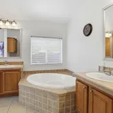 - Bathroom: Double Sinks, Shower and Tub, Tile