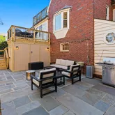 Upstairs, the primary suite features hardwood floors, large layout, dual closets, and a private rooftop deck for an unexpected and delightful retreat. Bathed in light, the bedroom level maximizes utility and storage with another bedroom, a den or nursery, closets, and a full hall bath complete this floor.
