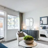 Enjoy nearly 50,000 square feet of resort-style amenities, including two landscaped courtyards with games, sundecks, and fireplaces, a swimming pool, two speakeasy lounges, fitness centers, coworking spaces, a game room, and a grand lobby with a sweeping staircase. Residents also have access to concierge service, package lockers, a pet spa and dog park, electric vehicle charging stations, and on-site dining, retail, and grocery options.