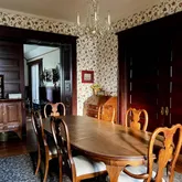 - Amenities: Built-In Bookcase, Ceiling-9+, Ceiling Fan(s), Countertops-Stone, Crown Molding, Dryer Hook Up Electric, Eat-In Kitchen, Foyer Entry, Garage Door Opener, Landscaped, Natural Woodwork, Pocket Doors, Porch Open, Range/Oven Hook Up Gas, Stand Up Shower, Formal Dining Room, Main Floor Laundry, Washer Hook-Up