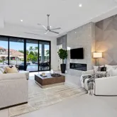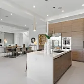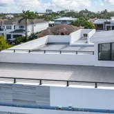suite bath for ultimate comfort and privacy. Beautiful and functional outdoor kitchen, hot-tub and pool. Boaters will love the ocean access, which features a private dock and a quick ride to Lake Boca. The stunning rooftop deck delivers panoramic views of the water and surrounding estate homes — perfect for sunset entertaining. Inside, no detail was overlooked. The home showcases high-end finishes, a custom kitchen with an additional concealed butler’s kitchen, Wolf appliances, Sub-Zero refrigeration, gas cooktop, wine cooler, gas fireplace and instant hot water system. Expansive living spaces blend elegance and