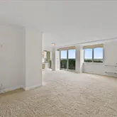 Expansive windows and private balcony