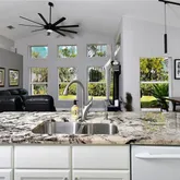 - Interior Features: Cathedral Ceiling(s), Coffered Ceiling(s), Eating Space In Kitchen, High Ceilings, Kitchen/Family Room Combo, Open Floorplan, Primary Bedroom Main Floor, Solid Wood Cabinets, Stone Counters, Vaulted Ceiling(s), Walk-In Closet(s), Window Treatments