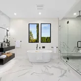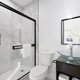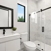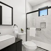 - Bathroom Features: Double Vanity(s), Fiberglass Shower Enclosure, Linen Closet, Shower and Tub, Shower Over Tub, Powder Room