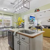 - Kitchen Features: Breakfast Bar, Cabinets White, Kitchen Island, Pantry, View to Family Room
