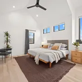 - Room Description: Dramatic primary with soaring vaulted ceiling and just the right amount of sunlight from thoughtfully placed windows. Large walk-in closet.